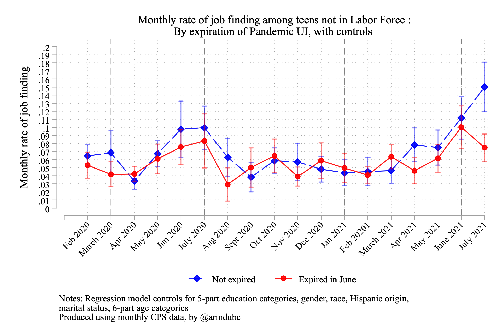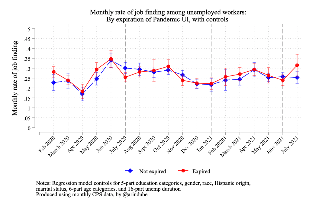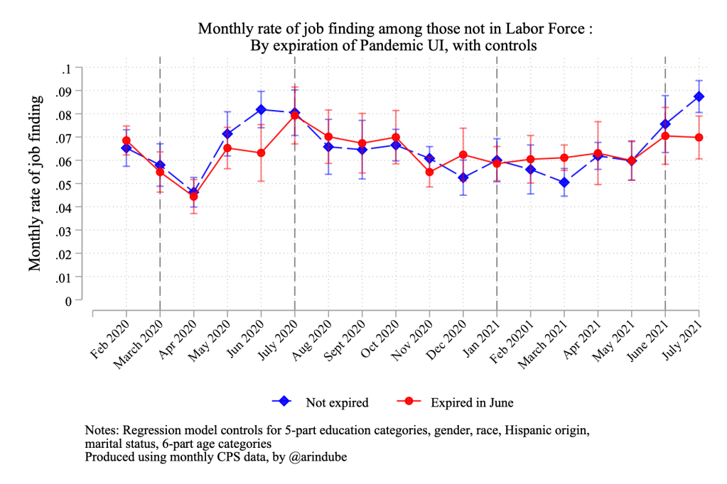 7 responses to “Early withdrawal of pandemic UI: impact on job finding in July using Current Population Survey”